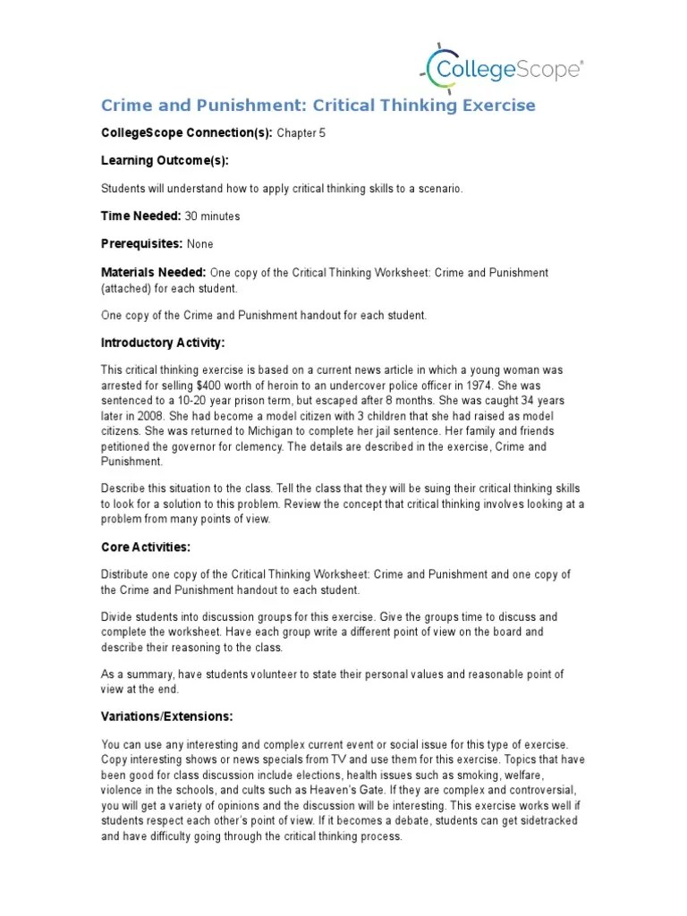 Critical thinking starts with the three powerful skills of linking ideas, structuring arguments, and recognizing incongruences. Brain exercises from the critical thinking co. Read about how leaders face and resolve challenges · 2. Sample exercises help you think about how you can build your own assignments for your own students. Practical exercises to strengthen critical thinking skills · 1. Teaching critical thinking, though, isn't always easy. Understand and challenge your biases. Comparative analysis is a good exercise for developing critical thinking skills. Express yourself in multiple mediums. Review some exercises, strategies, and. Remember in this process to use the language of thinking . Critical thinking involves looking at facts and considering information from different perspectives. The following are some ways to integrate critical thinking exercises into your esl lessons while still .
